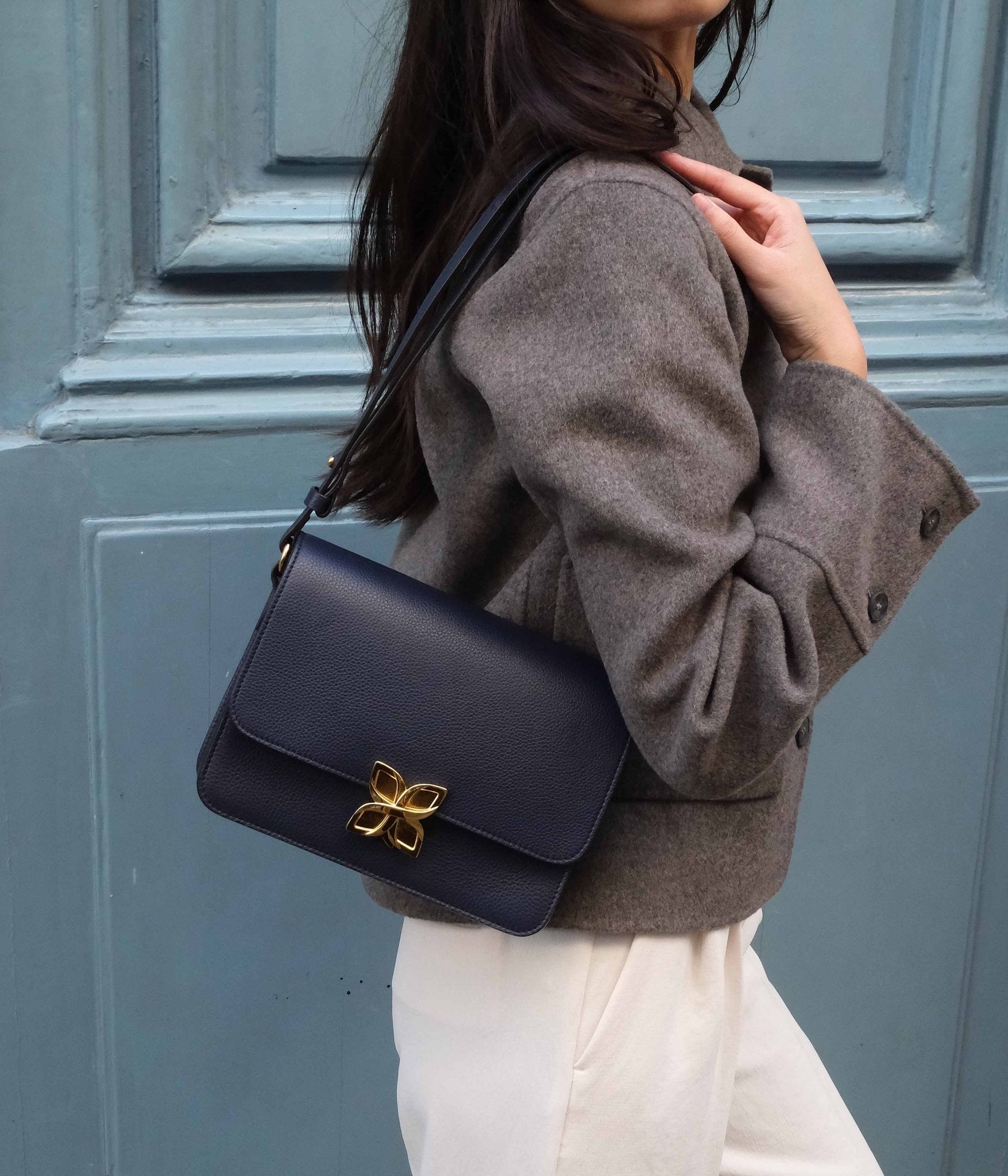 Step into understated elegance with our Hortensia bag in timeless Navy Blue grained calf leather. Carefully handcrafted in our Italian workshop, this design strikes the perfect balance between refined simplicity and modern allure.