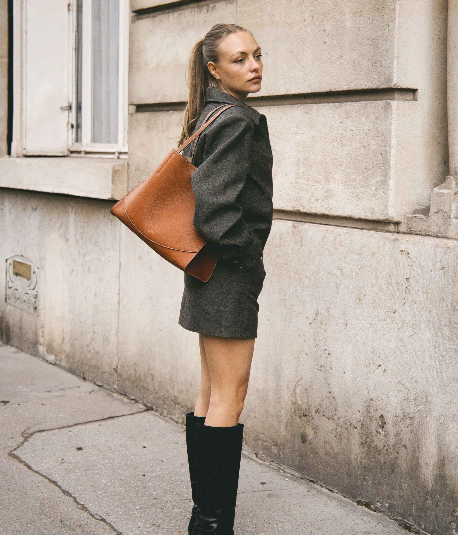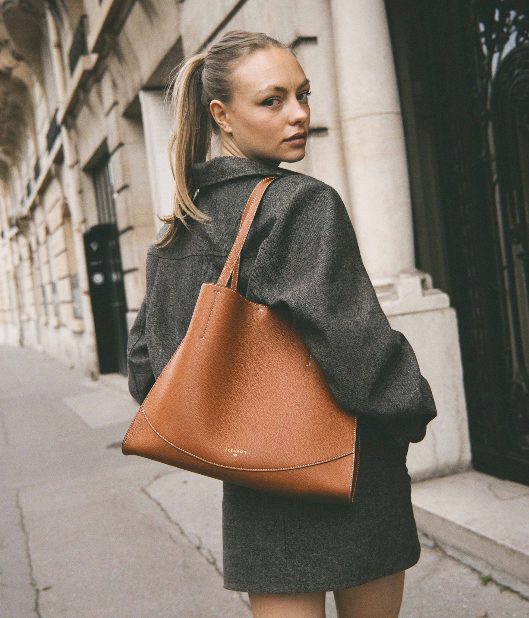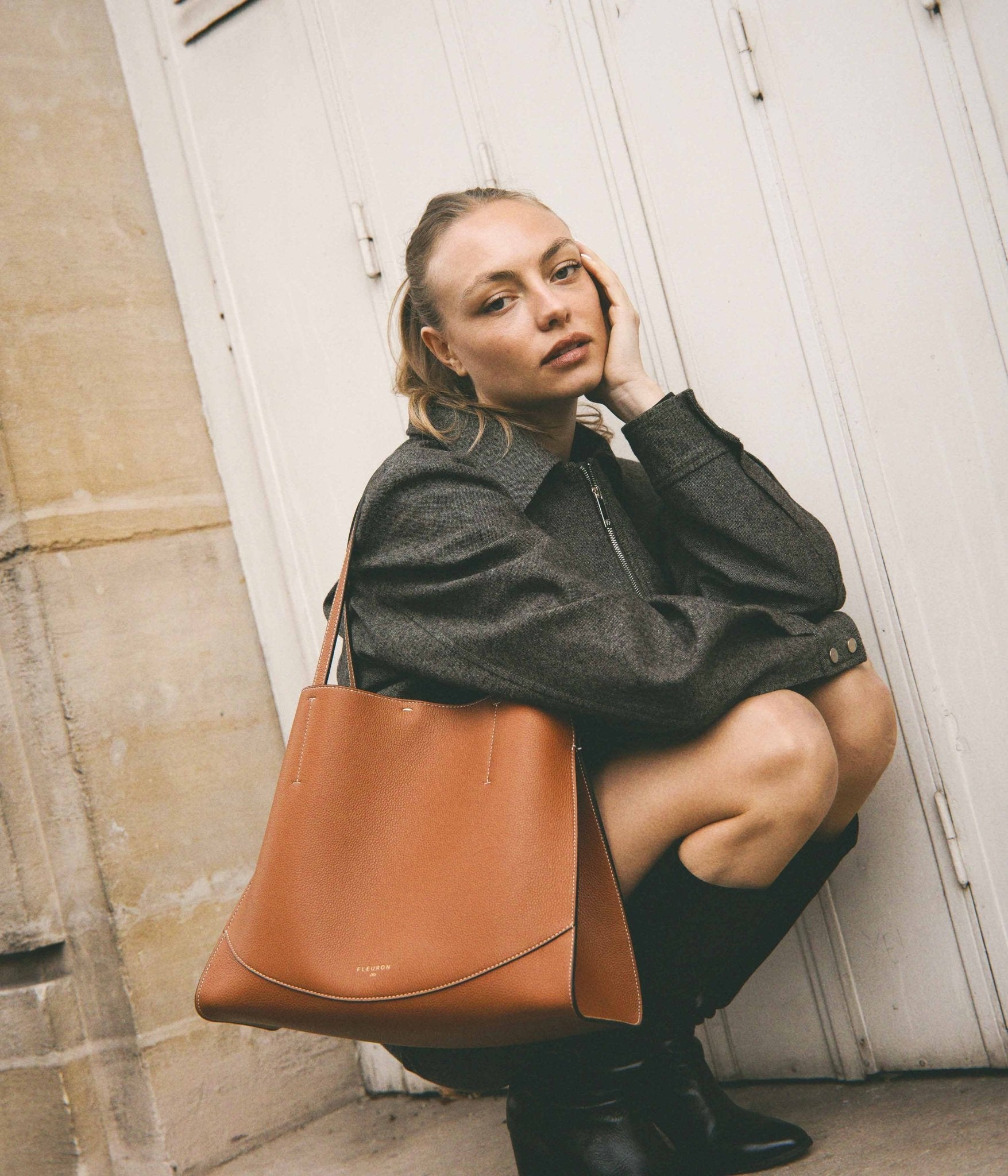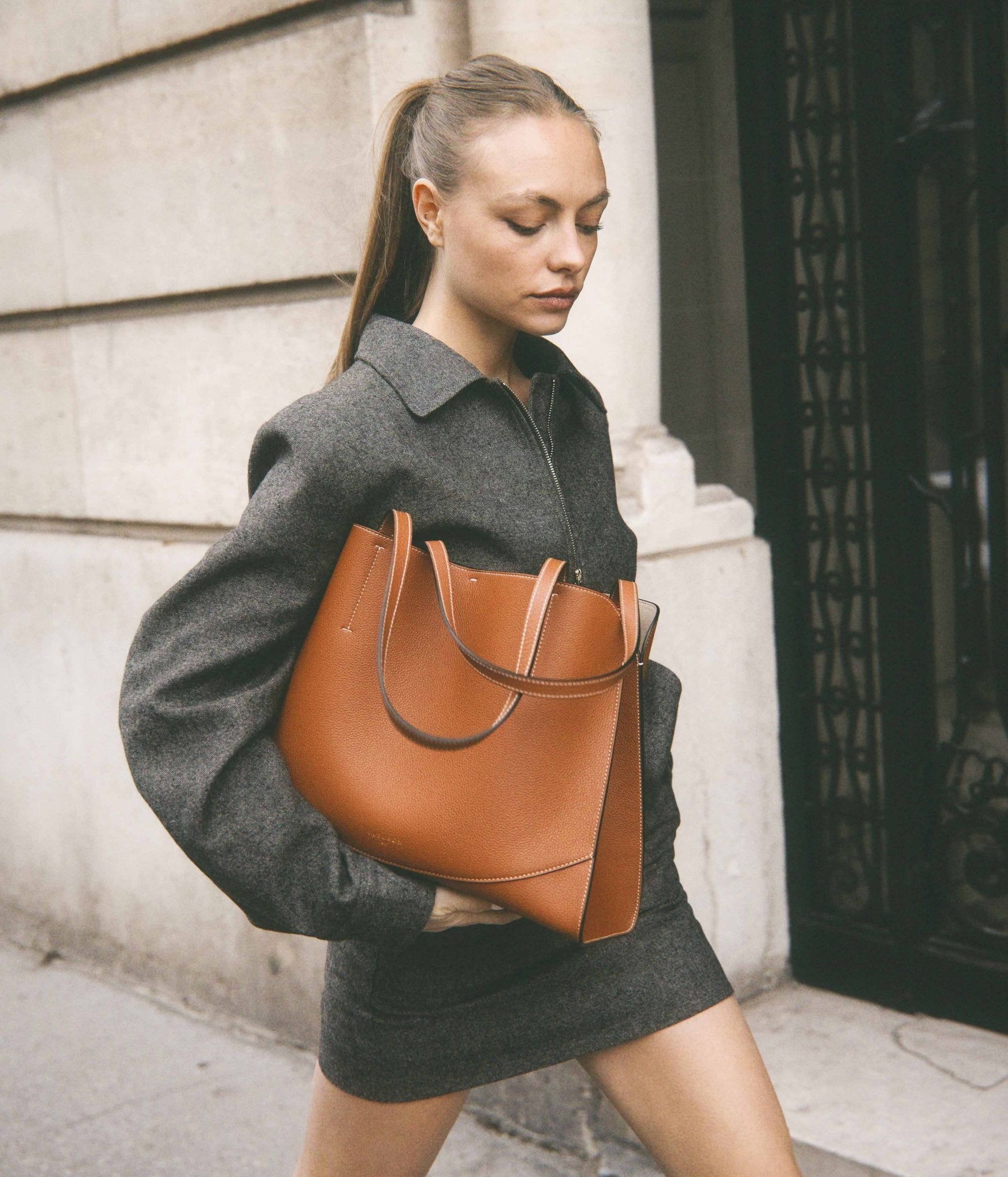 The Medium Oak tote in Caramel grained calfskin stands out with its warm, rich tone, bringing elegance to every outfit. Designed to fit A4 documents, it offers the perfect balance of practicality and sophistication.