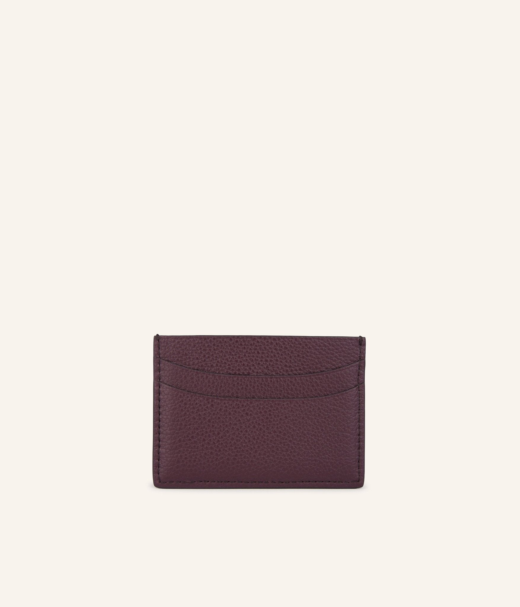The Noa Prune card holder features a compact format designed to slip effortlessly into any mini bag. Handcrafted in Italy from grained calf leather in a deep, rich shade, it is an essential accessory for keeping your most important cards neatly organised.