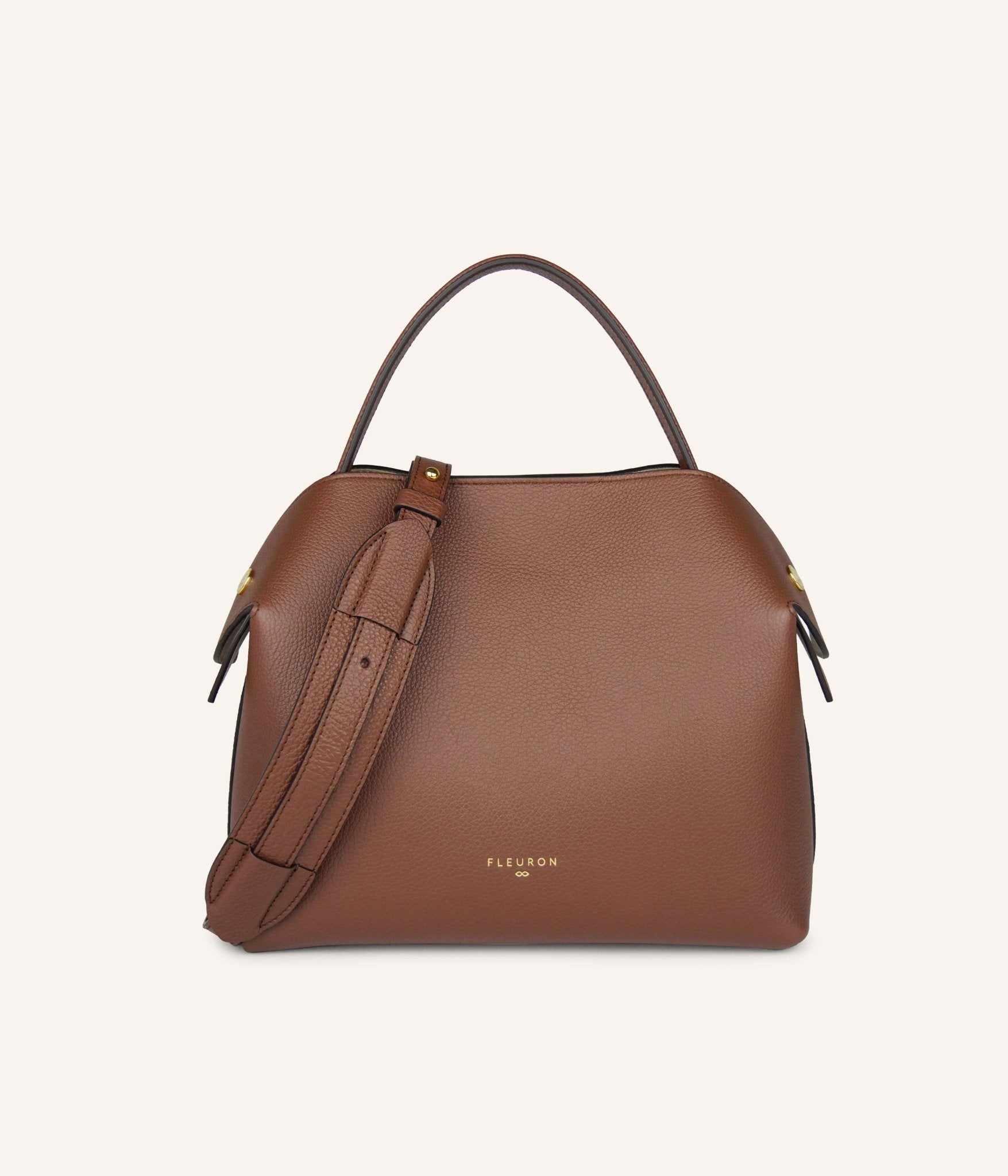 Handcrafted in our Italian atelier from grained calfskin and finished with gold-tone details, the Swann can be carried by hand, over the shoulder, or crossbody. It closes with an automatic magnetic clasp onto a beige interior. The sides unfold with a magnetic system, allowing the removable strap to pass over the top for shoulder wear, or to fall freely when carried by hand.