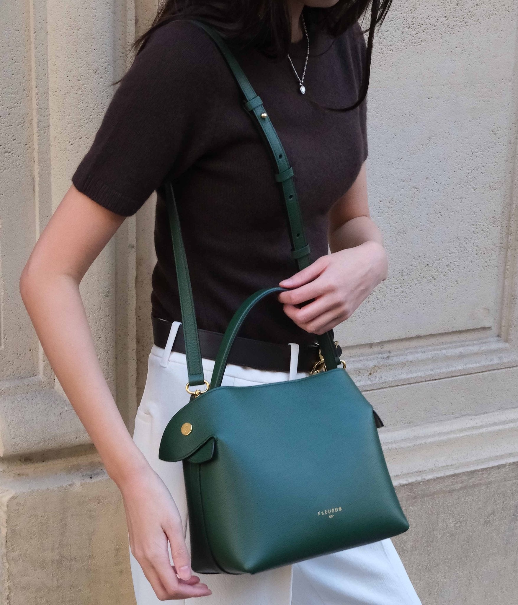 Carefully handcrafted in our Italian atelier from grained calf leather, this structured bag features discreet gold-tone hardware. It can be carried by hand, over the shoulder, or crossbody thanks to its removable and adjustable strap. A magnetic closure secures your essentials inside a soft beige microfiber lining. The sides unfold with hidden magnets, allowing the strap to pass over the top for shoulder carry, or remain tucked away for an elegant handheld look.